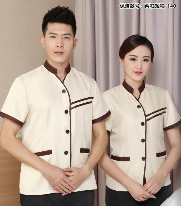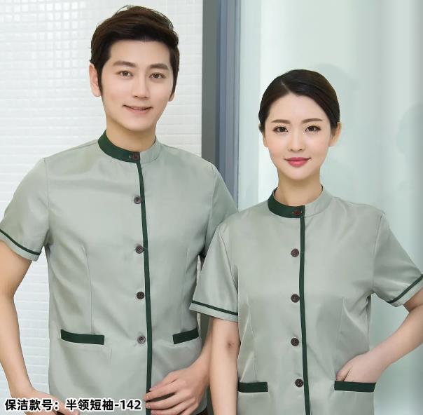 普通淺綠色夏季短袖男女同款酒店工作服